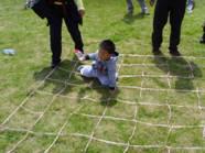 饭后大家一起草地上做游戏。游戏规则是:有一个正方形的框,里面又分100个小方格(10*10),让队里的队员从方格的这边跳格子到对面,但是只有一种正确的路线,这种正确路线只有一个裁判知道,他可以给队员一点提示,队员一旦走错了,就要原路返回,再有另一个队员接着前面正确的格子跳下去,其他队员可以给他提示,帮他记住前面错误的路线, 哪个组先到那他就胜利了。我们共分了4个小组,每组8个人,大家玩的不亦乐乎,因为会有丰富的奖品呦!