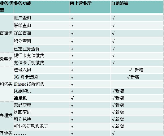 T:实现运营商多功能综合自助服务终端所有功能,完全实现网厅所能达到的功能