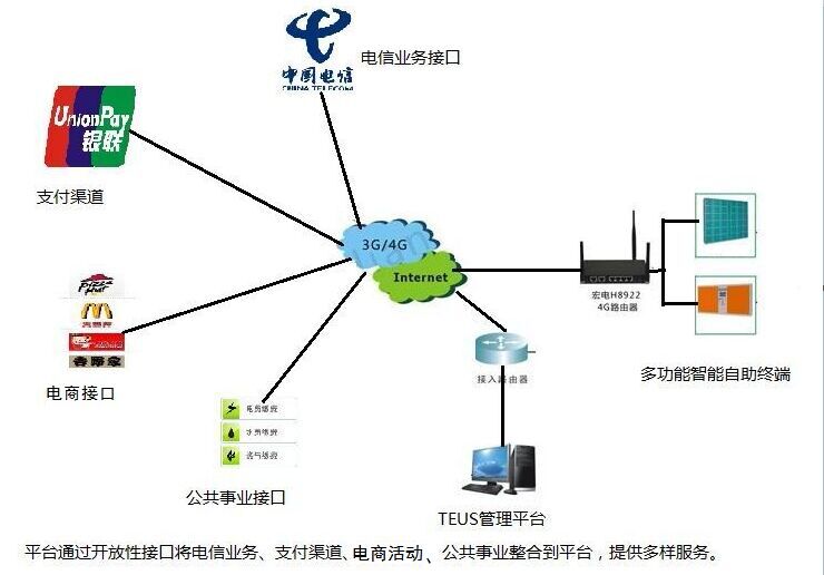 便捷通电子自助服务站“TEUS”,是我司研发的新一代自助设备,它不同于传统的自助设备或简单升级,它不仅取代了传统自助设备功能,更实现互联网o2o一种全新互动形式,超炫的外形,与摆放场所环境与诉求充分结合,能提供各类中间业务和服务,创造有史以来最好客户体验模式,引导未来新的生活方式,并成为电信运营商新兴盈利增长模式。