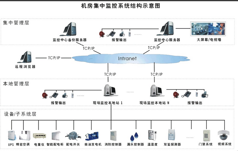为保证组织的安全、稳定、高效运行,保证网络设备的良好运行状态和设备使用寿命与安全,实现用户的最大投资效益,就有必要对网络运行环境的电力供应、温度、湿度、漏水、空气含尘量等诸多环境变量,UPS、空调、新风、除尘、除湿等诸多设备运行状态变量,进行24小时实时监测与智能化调节控制,以保证网络运行环境的稳定与网络软硬件资源、设备的安全以及相关信息数据资产的安全,最好的办法就是采用机房监控系统,一种可以7*24小时机房监控。