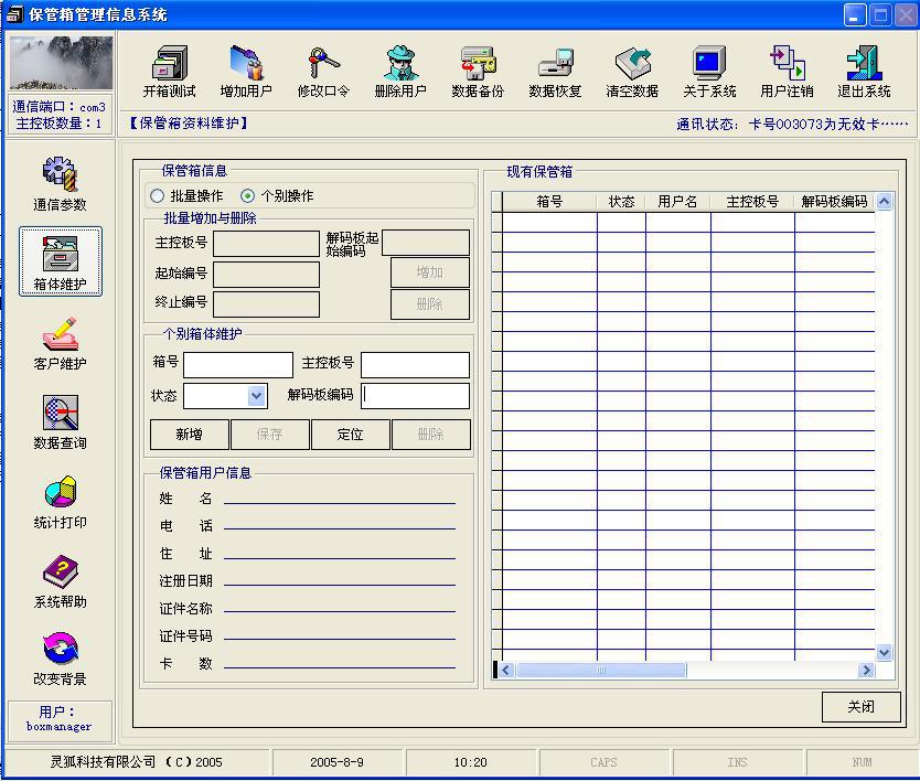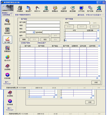 用来新增、修改及删除客户资料,为客户定位箱体,及为每个用户登录用户卡