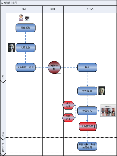 征对浦东机场海关的需求,实现旅客上下机舱比对、与航空公司旅客仓单信息比对、机场区域跟踪、视频可疑人群跟踪和事后追溯等,我司开发了相应应用功能,系统主流程大致如下图所示: