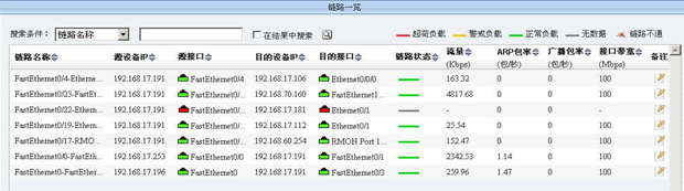 通过对网络节点状态的轮询, Network Focus可以实时监控网络中所有资源的状态。拓扑图上所显示的各被管对象图标的左下角均会有一个状态灯来代表该网元当前的状态,如绿色表示用户所关心的对象正常运行,黄色表示警告信息,红色表示严重错误,设备与设备之间的链路如果出现中断也会以红颜色提示。