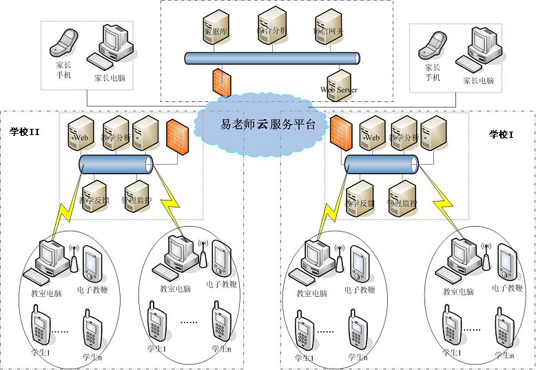 (3)多层次高度集中、稳定可靠、灵活可定制的云服务体系建设。通过云服务建立一体化的教学数据处理、分析与应用,融合学生、家长、教师、学校和家庭的共同需求,为学生提供一个综合的全方位的服务。