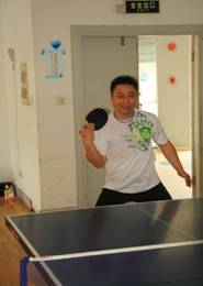 另一个场地上乒乓球比赛的激烈程度一点不输羽球,由于同事间有好几个女同胞是乒乓高手,恰好展开男女混合比赛,棋逢对手、不分上下。他们打的酣畅淋漓,观众则看的惊心动魄。坚守在外进行售后维护的工程师也随后赶到,虽然天气酷热大汗淋漓,但是看到已经展开的热火朝天的比赛,忍不住跃跃欲试加入进来,使比赛赛况更显得热闹和激烈。