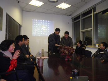 刘老师演讲语言声情并茂,人物刻画栩栩如生,仿佛一下子把大家带到那个年代,呈现在我们面前的是国共两党惨烈斗争的场面。幽默的语句不时激起阵阵笑声。最后是大家的提问时间,刘老师一一耐心解答,会后大家纷纷希望下次继续请他讲解,以了解真实的党史。讲座后,公司例行向刘老师赠送礼物,刘老师带来了二本个人著作赠于公司图书馆。